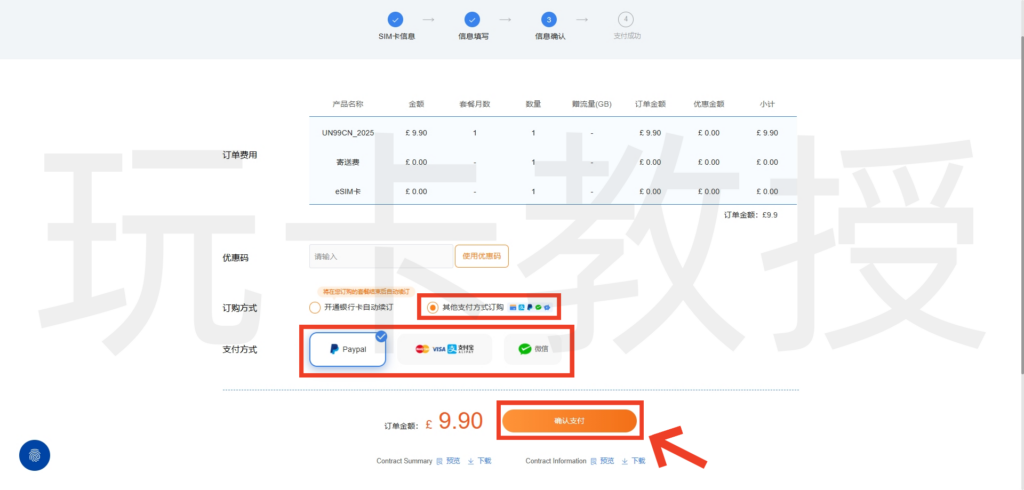 选择其他支付方式订购,支持银行卡,PayPal,支付宝,微信等支付方式,点击:确认支付
